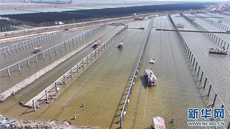 据悉,三峡青口盐场渔光互补“光伏复合”项目是江苏省最大的单体陆基渔光互补项目。该项目以“渔光一体”模式实现综合开发,通过“板上发电、板下养鱼”的协同布局,将光伏电站与水产养殖深度融合,构建绿色生态循环体系。目前,项目现场正在进行光伏板及组件安装工作,预计今年5月31日前全容量并网发电。