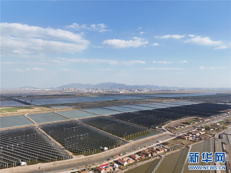近日,在连云港经济技术开发区猴嘴街道三峡青口盐场,近78万块光伏板如波浪般起伏,深蓝色板面倒映着鱼塘的波光,蔚为壮观。