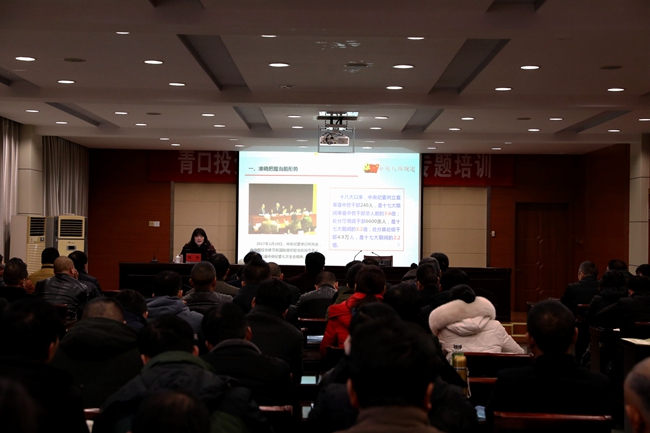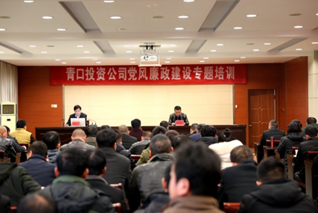 为进一步强化作风建设,增强党员干部廉洁从业意识, 1 月 11 日上午,青口公司邀请市纪委 党风政风监督室主任绳艳 作了题为《落实八项规定精神 从严从实改进作风》的专题报告,集团纪委书记汪群、公司领导班子成员和全体在岗党员参加此次讲座,讲座由党委书记、董事长胡传法主持。