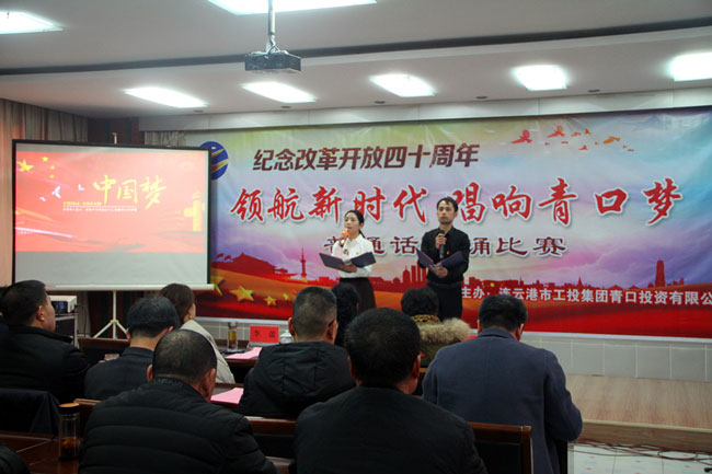 为了纪念改革开放四十周年,引导和激励广大职工围绕 “高质发展、后发先至”主题主线,为建设“强富美高”新青口、开启青口发展新征程贡献力量。12月11日下午,青口公司党委隆重举行“领航新时代 唱响青口梦”纪念改革开放40周年普通话朗诵比赛。活动邀请到连云港市语委办副主任、诗朗诵艺术家协会副主席朱卫文,国家级普通话测试员、市朗诵艺术家协会副秘书长李蕾、主任播音员、市朗诵艺术家协会副主席朱平担任评委。公司领导班子 及 全体管理人员参加活动