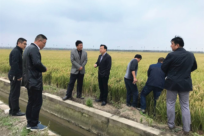 10月16日,苏粮集团盐城江海粮油有限公司总经理宋俊成一行来我公司考察调研水稻种植情况,公司党委副书记、副总经理史祥平,党委委员、副经理周绪祥陪同考察。