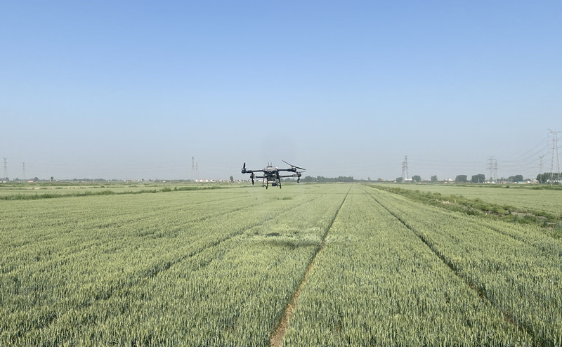 5月13日清晨,大新农场抢抓有利天时,利用无人机开展“耐盐碱”小麦叶面肥施用作业,有效提升农业精细化管理水平、提升农机作业质量和效率。(王璐)
