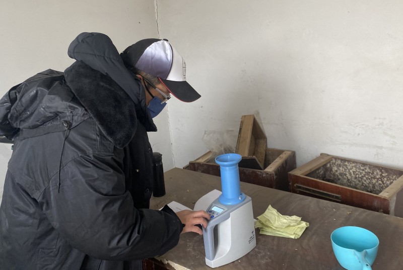 为确保粮食存储安全和保障种植效益,大新农场晒场测量人员深入晒场对种植户粮食进行跟踪测水作业,为粮食安全储存打造坚实屏障。(王璐)