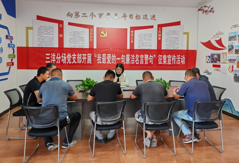 在中秋、国庆即将到来之际,为增强党员干部廉洁意识,营造浓厚的清廉文化氛围,将党风廉政建设向纵深推进。9月14日上午,三洋分场党支部在党员活动室开展“我最喜爱的廉洁名言警句”征集宣传活动。