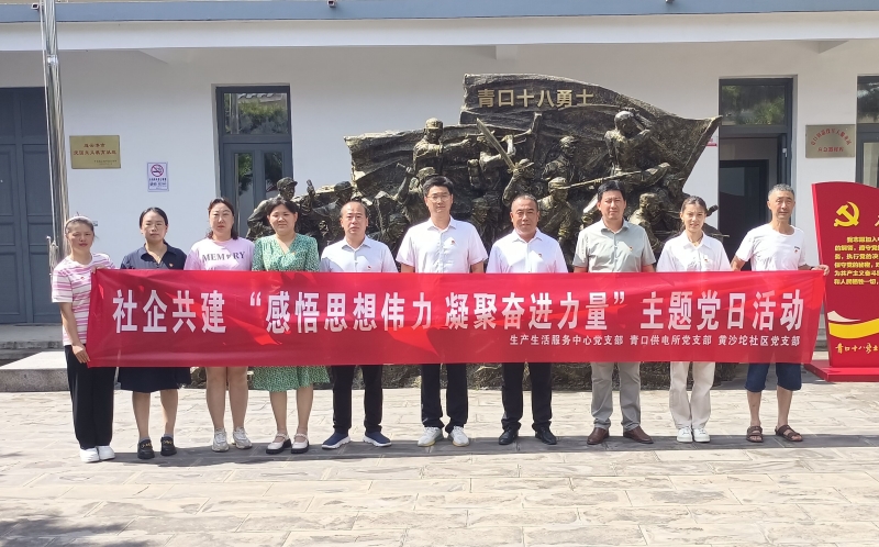 为深入学习贯彻习近平新时代中国特色社会主义思想,努力在以学铸魂、以学增智、以学正风、以学促干方面取得实实在在成效, 8月2日,生产生活服务中心党支部联合黄沙坨社区党支部、青口供电所党支部,以党建联建为载体,组织党员前往赣榆十八勇士纪念馆开展“感悟思想伟力 凝聚奋进力量”主题党日活动。