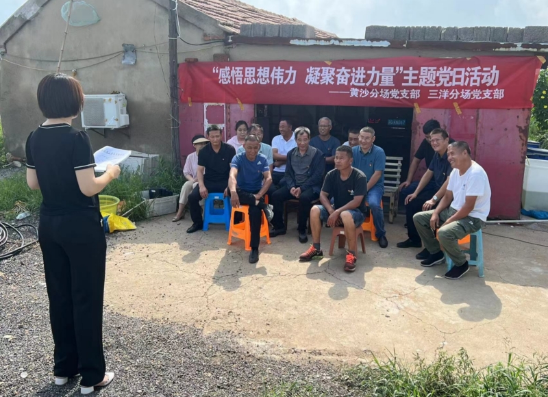 8月1日上午,三洋分场、黄沙分场党支部,在三洋分场生态养殖示范塘联合开展“感悟思想伟力 凝聚奋进力量”主题党日活动,共同学习了《习近平著作选集》。