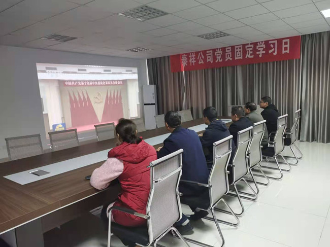 11月20日下午,泰祥公司党支部结合固定学习日,组织党员及员工,收看学习贯彻党的十九届五中全会精神。将贯彻好党的十九届五中全会精神作为一项重要政治任务,切实把思想和行动统一到全会精神上来,在工作岗位中建功立业、奋勇争先。 泰祥支部