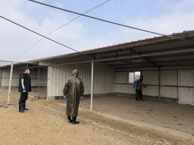 丁海明接到上级命令后,马上行动起来,严格按照疫情防控要求,进行鸡舍的消毒工作:环境消毒、卫生清理……生态养鸡场内,丁海明戴着口罩,有条不紊地进行着这些繁琐的工作。