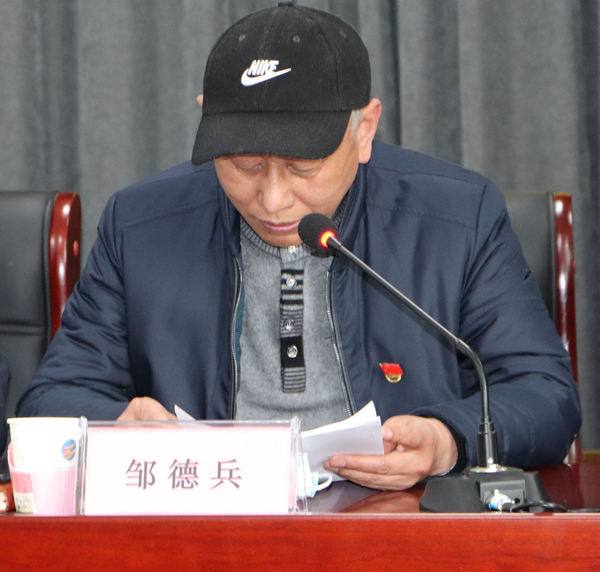 公司党支部书记邹德兵作题为《服务增产增收,助推创新创优,为公司高质量发展提供坚强政治保障》的党建工作报告,全面总结回顾了2019年党建工作,并指出2020年是“十三五”规划的收官之年,也是决战决胜“三年行动计划”的关键之年。公司党支部要进一步发挥“把方向、管大局、保落实”的领导作用,带领广大党员和管理人员担当作为,开拓创新,重点做好五方面工作,努力以高质量党建推动公司高质发展:一是强化思想建设,提升理想信念的引领力;二是强化组织建设,提升服务发展的战斗力;三是强化作风建设,提升拒腐防变的免疫力;四是强化队伍建设,提升创新管理的软实力;五是强化和谐共建,提升促进发展的聚合力。