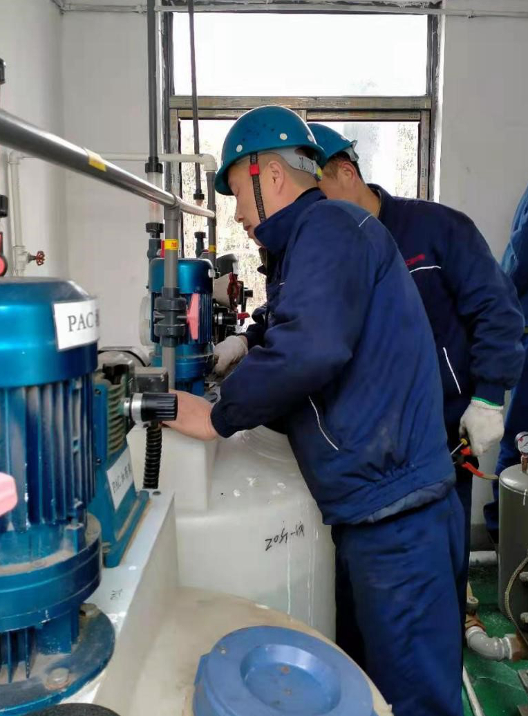 为严格遵守环境保护法,尽好保护环境的企业责任,公司配置了24小时运转污水处理设施,确保不让一滴污水不达标外排。(图为2月23日上午,员工定期维护污水站设备现场。)