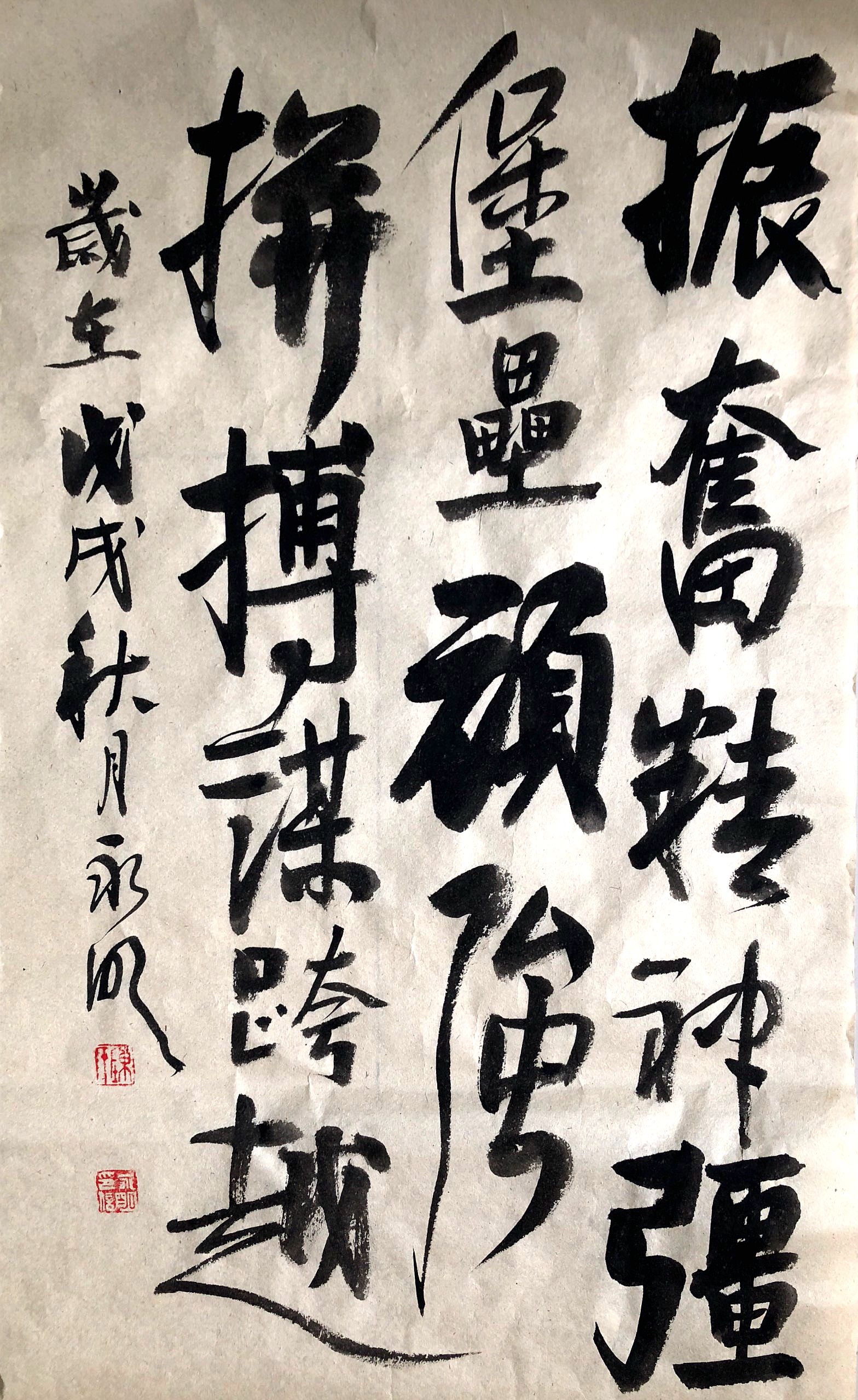 职工陈永明书法作品《振奋精神强堡垒,顽强拼搏谋跨越》