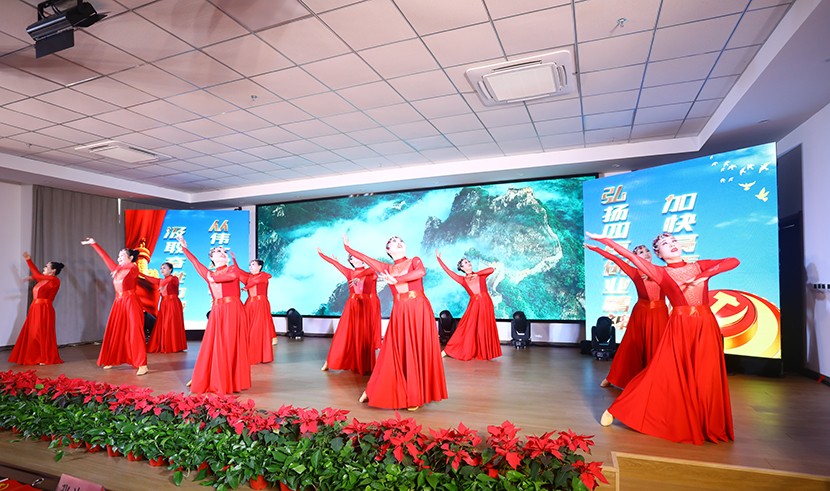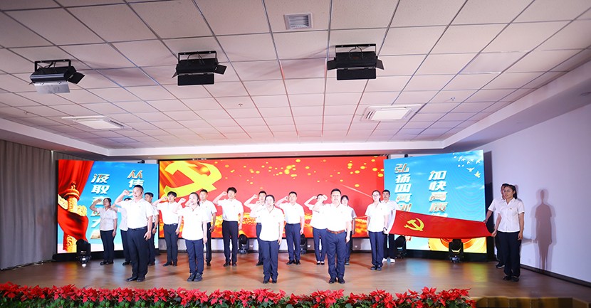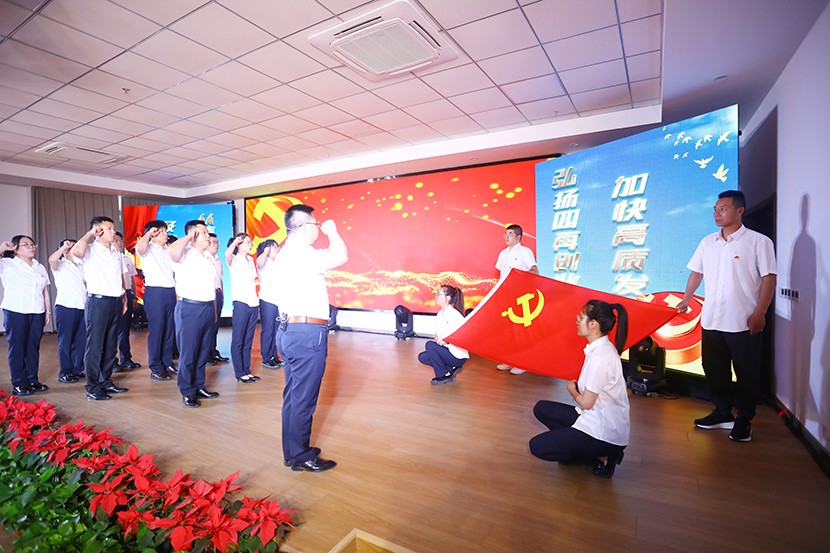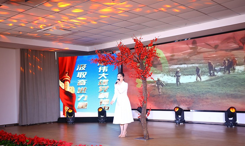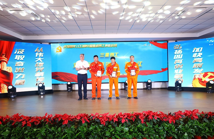 演出中,陈大壹、宋思雯、闫佳俊等十名新发展的中共预备党员和新老党员代表进行了现场宣誓,并合唱《我宣誓》。对公司党委评选出的星级员工进行表彰,并对三星级员工进行了专访。