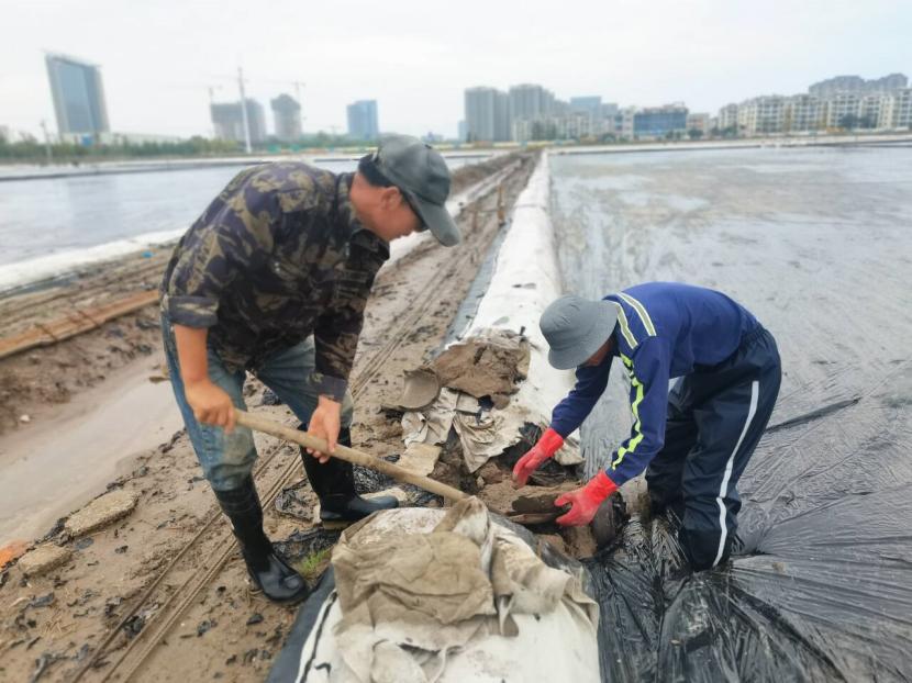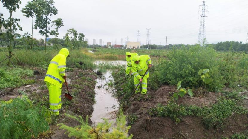 益丰园林分公司立即成立防汛应急党员志愿队伍,及时排查80亩苗圃基地水情。党员同志们发挥先锋模范作用,面对风雨交加的环境奋勇争先,清杂草疏通水道、开挖排水沟加强排水、清理倒伏树木……不畏艰难不怕脏累,用实际行动展现党员担当;裕达分公司强化汛期值班值守,双人加强值班,多频次安全巡视,特别是对德兰光伸市场商铺及院内厂房开展点对点排查,期间多次对院内排水管道及时疏通清理,防止管道堵塞雨水倒灌发生;美多利第一时间启动防汛排涝应急预案,安排党员突击队在园区易积水点提前布置排水设施,清除杂物杂草堵塞,确保排水渠通畅,切实把强降雨对入驻企业的影响降到最低;资源分公司一方面全力做好保盐保卤工作,加强结晶区排水作业,做好防风措施,确保盐、卤安全。另一方面,养殖办积极巡视水情、池塘沟堰巡查,加强与养殖户联系,及时处理积水,全力做好防涝服务。