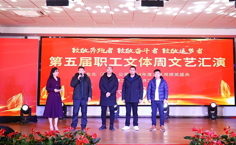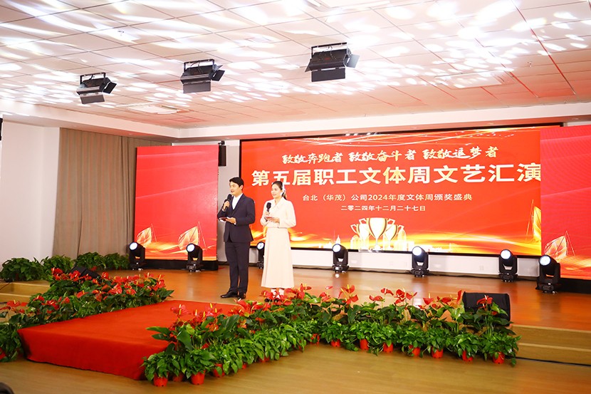 12月27日下午,台北(华茂)公司第五届职工文体周闭幕式暨颁奖文艺汇演活动在环保装备产业园圆满落幕。公司领导、各单位党政工负责人(项目部负责人)、各部门负责人、星级员工、受表彰人员、演职人员观看演出,特邀请集团纪委书记张兴林,集团党建人资部部长夏正斌、集团纪检组组长王建松、集团工会副主席陆向东、集团纪委副书记喻敏等同志到场观摩、指导。