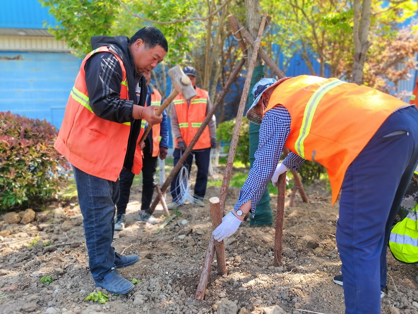 5月1日早上七点不到,在镜湖路上,四十余名绿化工人已经开始卸苗、栽苗。为确保有序施工、保质保量、按期完成,公司负责人范晓宝带领技术人员坚守在施工一线,牢固树立时间观念,强化职责使命,督促指导抢时间、赶进度、保质量,全力加快挖坑整地、苗木种植、草坪铺垫、浇水修剪等工作。同时,督促做好现场安全、后勤保障相关工作。当日下午,累计种植小叶黄杨300余平方米、日本晚樱70余棵。
