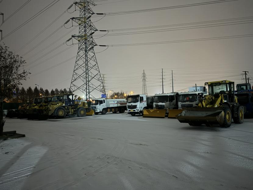 一夜风雪,一夜无眠。逆雪而上,昼夜奋战。截至21日上午10时,公司全员出动200余人次,大小机械40余台(班),全力确保辖区交通线畅通。