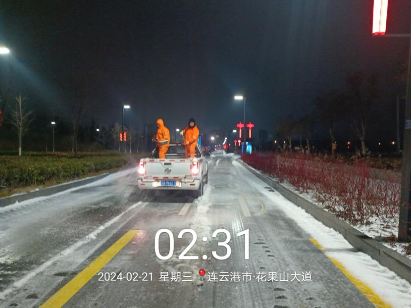 受寒潮影响,2月20日下午,港城普降“冰雪+冰粒”,投资公司第一时间启动恶劣天气应急处置预案,道路保洁、市政养护、后勤保障等战线的干部职工以雪为令,在重点区域、重点路段、坡道、桥梁、涵洞等结冰路段进行撒盐融雪融冰作业,全力以赴除冰雪、防事故、护平安,为市民群众出行一路“护航”。