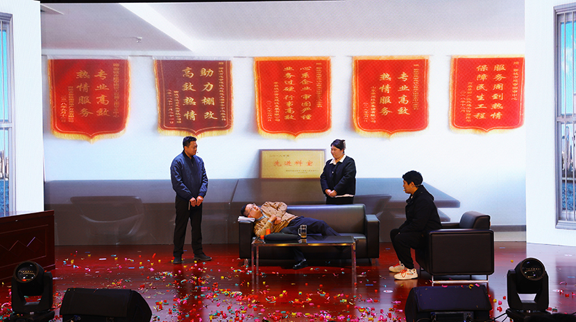演出在舞蹈《祖国你好》中拉开序幕,随后,一个个欢快、喜庆、祥和的文艺作品相继上演。这其中,既有充分展现台北发展力量的情景剧《我们是台北力量》《南泥湾畅想》,也有大气磅礴的男女对唱《不忘初心》和小合唱《众人划桨开大船》,有草原气息的笛子独奏《牧民新歌》,讽刺当下“躺平式”干部的廉洁作风小品《坑》,展现公司活力的男团《舞蹈:串烧》《山丹丹花开红艳艳》,奇特、神秘的魔术表演,一腔情怀的京剧《沙家浜-唱段军民鱼水情》……最后,在机关全体人员带来舞蹈《相亲相爱的一家人》中落幕,高潮迭起、精彩不断,得到广泛好评。