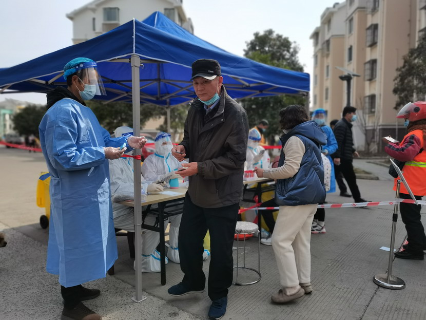 夜里9点40分,昌圩临时党支部抗疫工作群里信息不断:“同志们,刚接社区紧急通知,明天要进行第五轮核酸检测,还没有睡的同志们请到社区紧急集合,又增加两个检测点,抓紧去建点摆台。” “霍正钢收到、苏玲收到、秦黎明收到、朱文健收到、邱荣滨收到、于洪亮收到……”,“好,晚上温度比较低,请大家穿暖和一点,10点社区准时集合。”昌圩临时党支部书记李明发完最后一条信息,穿好马甲,戴上口罩,出发下楼。