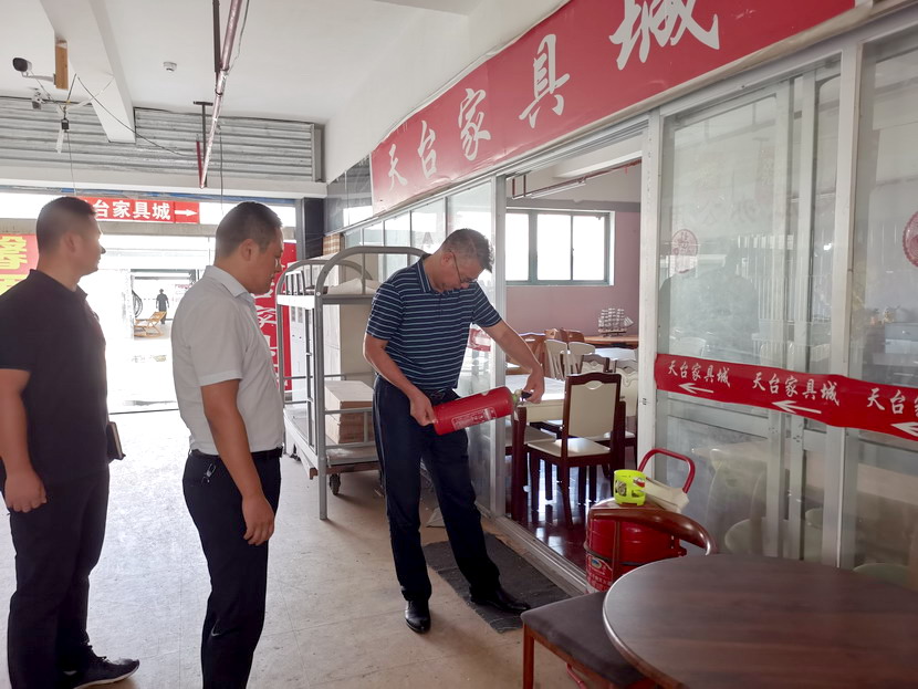 随后,王德志一行重点检查了德兰家俱馆消防安全情况,对家俱市场用电、消防通道、安全通道标识、消防栓、灭火器,以及厨房用火等进行了仔细查看,详细询问,现场收缴液化气罐一个。