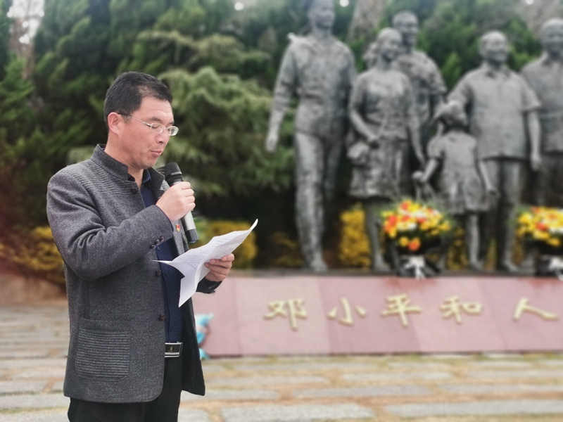 全体党员在“邓爷爷”雕塑前结队献花、鞠躬致意、重温入党誓词。党委副书记杨善革结合伟人和中国共产党的光辉历程、投资公司当前发展的实际和首要任务为大家上了一堂“实景”党课。