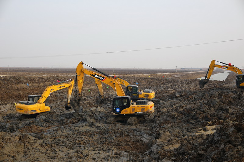 “本周,开塔河工程一定要实现引水入池......”根据公司作战指令,养殖发包战工地上,十余台大型挖掘机一字排开,紧张有序作业。