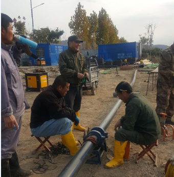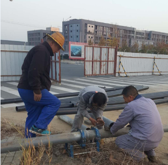 镜头二:负责汇晶路新建桥梁钙液管道迁建工程的供卤组联合复晒滩人员早早投入到施工操作中,该项工程是为了配合开发区汇晶路与跃湖路新建连通桥梁的需要,需要迁改钙液管道160米,工程造价6万元。