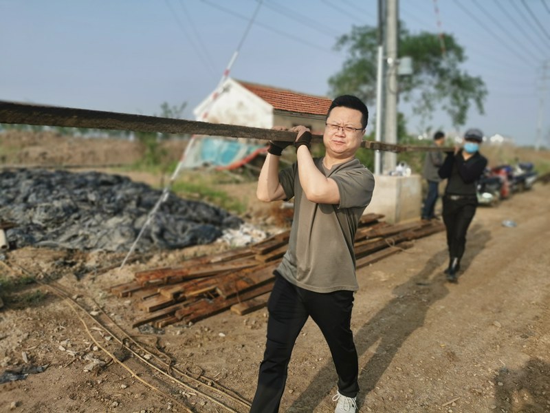 烈日酷暑下,大家用汗水编织出一幅激情四射的劳动图。38度的高温,3个小时,1500余米的浮板安装被顺利拿下。