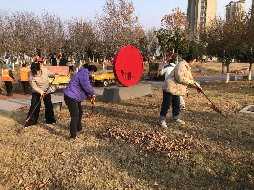 活动现场,党员同志、积极分子分为两拨,分别从创智绿园北门和东门对园内杂草落叶进行清除。在戴好手套,做好防护、防冻措施的同时,纷纷拿着扫帚、耙子等工具,统筹安排、分工劳作,齐心协力,有的用扫帚扫落叶、有的用袋子装落叶、有的用耙子搂落叶……大家忙得热火朝天,充分发扬不怕脏、不怕苦、不怕累的党员先锋本色,创智绿园内处处是同志们清理杂草落叶的身影,构成了一道亮丽的风景线,经过一个多小时的辛勤劳动,两拨队伍顺利“会师”,沿途杂草落叶被清理得干干净净,公园环境也得到明显改善。