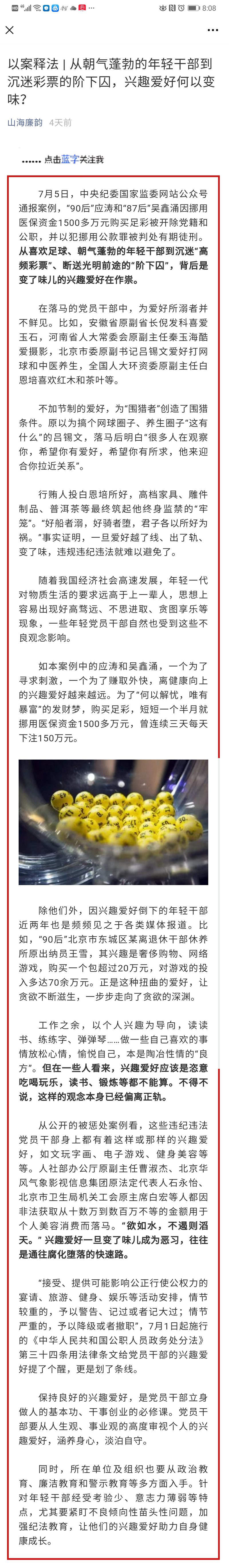 [以案释纪]从朝气蓬勃的年经干部到沉迷彩票的阶下囚,兴趣爱好何以变味?