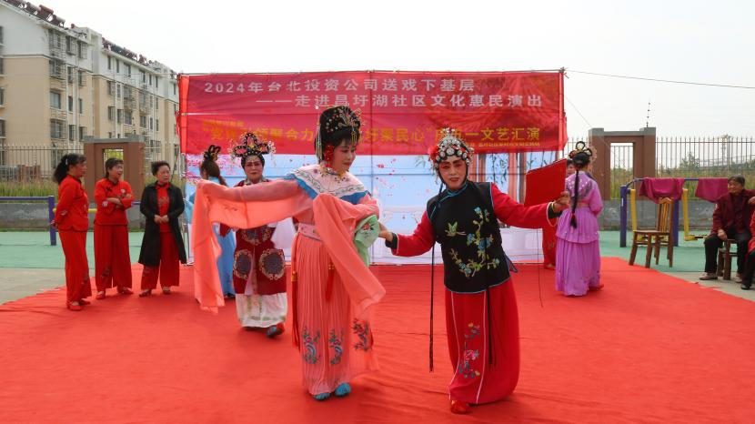 为了丰富社区居民精神文化生活,推动文明城市创建,提高城区居民健康生活质量和幸福指数,5月6日下午,投资公司工会在昌圩湖社区文化广场组织开展了“送戏下乡进社区 文化惠民暖人心”演出活动,邀请猴嘴文化馆的演员们为昌圩社区居民带来精彩的戏曲、歌舞表演。