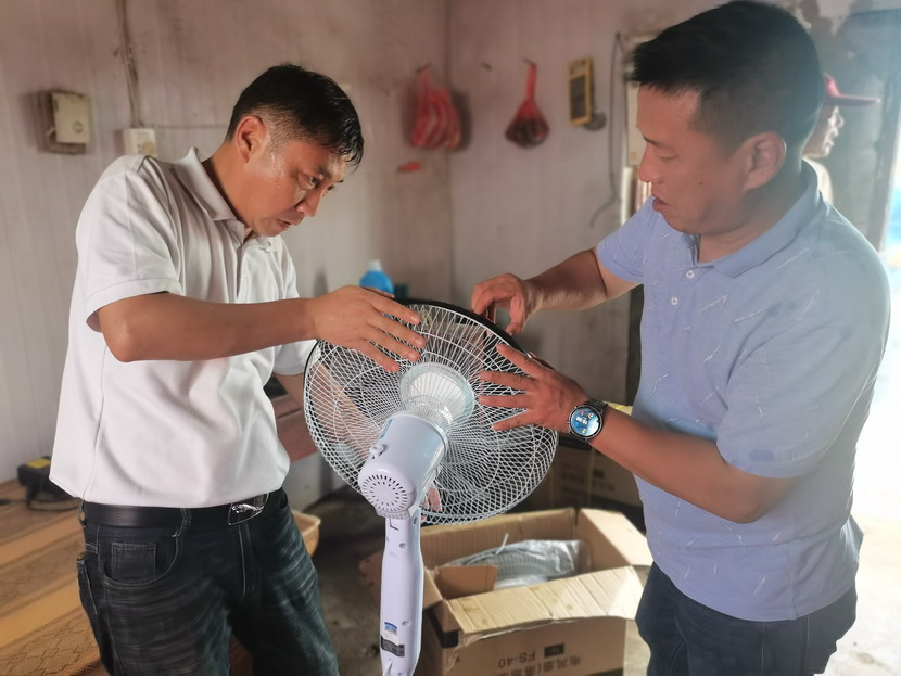 近期,海州湾工会协同公司一起深入班组开展“安全生产百日攻坚大行动”,认真排查生产作业场所及职工值班室安全隐患。在排查过程中,发现值班室的吊扇十分陈旧,运转时有晃动的现象,存在风叶脱落的危险,且风力微弱,达不到良好的降温效果。工会现场拿出解决方案,决定采购一批落地扇送入班组,为职工送去一丝清凉。