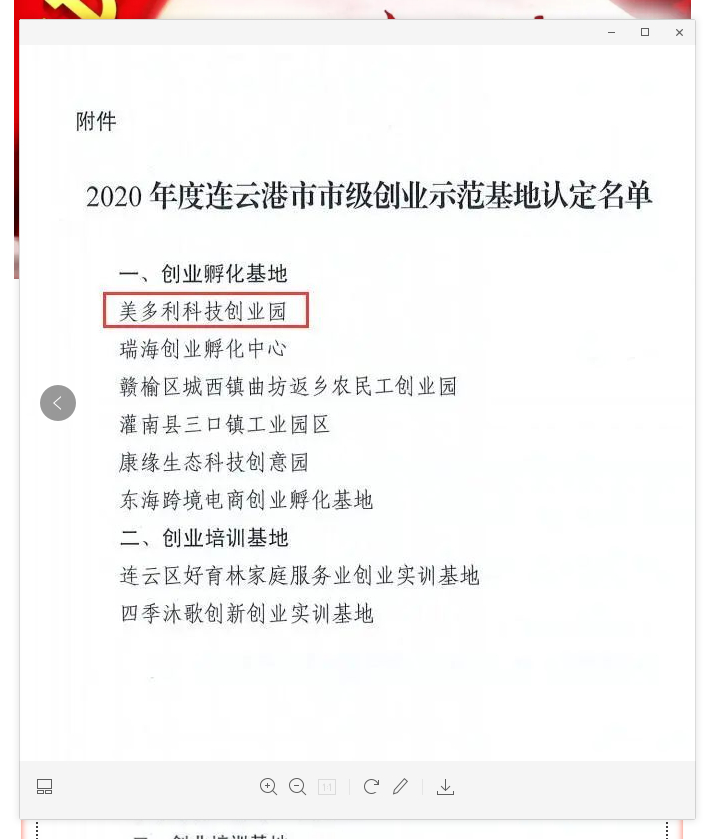 近日,连云港市人力资源和社会保障局公布了2020年度市级创业示范基地名单,美多利科技创业园成功入选