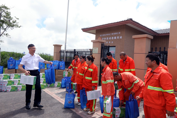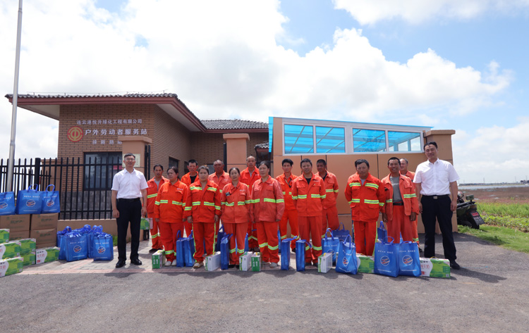 酷暑盛夏,热浪滚滚,高温“烤”验着每位奋战在一线的职工,也牵动着集团公司领导的心。7月18日,集团公司副董事长、总经理张六林一行到徐圩生产一线“送清凉”。集团公司副总经理陈如军,办公室主任王力;投资公司党委书记、董事长、总经理庄清付,党委副书记、工会主席刘刚陪同。