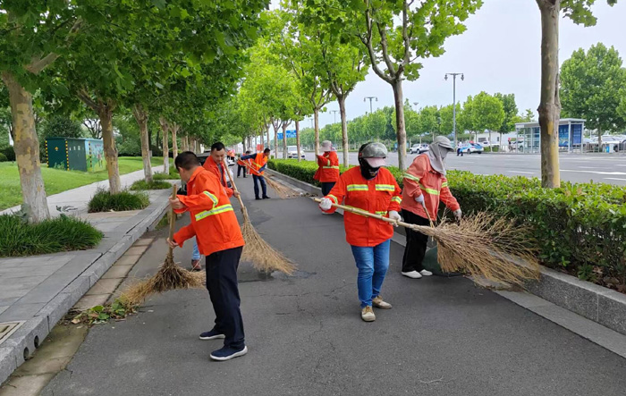 集中奉献“热火朝天”。学习结束后,保洁、瑞南支部近20余名党员,汇集于徐圩新区核心区域上海路、南京路辅道现场,开展人工清扫道路积土,树叶集中奉献劳动。劳动现场,大家无惧七月高温炎热天气,挥动手中大扫把,迅速清扫落叶,雨水冲涮下来的绿化带中泥土长达2000多米长,打包转运各类垃圾30多包,看着整洁黑色路面呈现眼前,队员们情不自禁露出开心的笑容。(杨波 金知青)