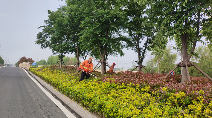 连日来,瑞南分公司瞄准二季度绿化管养工作目标,有序推进清除杂草、修剪树枝、打药除虫、绿化垃圾清运等工作,全面提升辖区景观携手奋战。