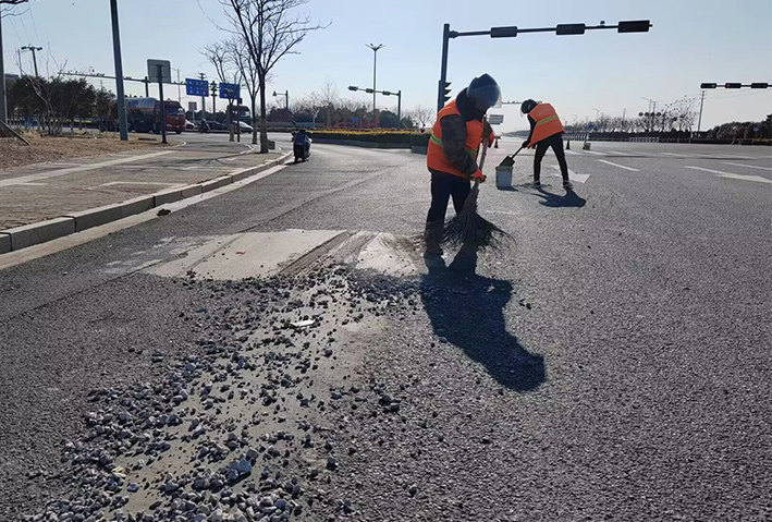 灯塔路路口,巡查人员发现大面积车辆抛洒物,生产骨干张学军、徐习东、陆永柱接到公司应急处理电话第一时间赶赴现场,尽管天气寒冷,但是大家干的热火朝天,共清理泥块30多处,长达800多米长;转运石子、石块50多车,他们再次用行动彰显党员示范风采。