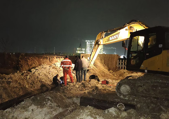 深夜10时许,一处施工现场,施工正酣,挖掘机轰鸣声不断,工人们还在加紧作业,虽冬日寒意逼人,工地上仍是一派热火朝天的景象。陆建军、季小东等施工人员克服重重困难,破路面,挖掘管路泥土,熔接,铺设管道,在遇到的每个困难中,都倾尽全力,担当作为。经过十余天紧张施工,已完成直径400PE管道768米、直径200给水管道804米铺设工作,完成工作量99%,满足了规划的总体要求,后续修筑检查井也在有序进行中。(杨维军)