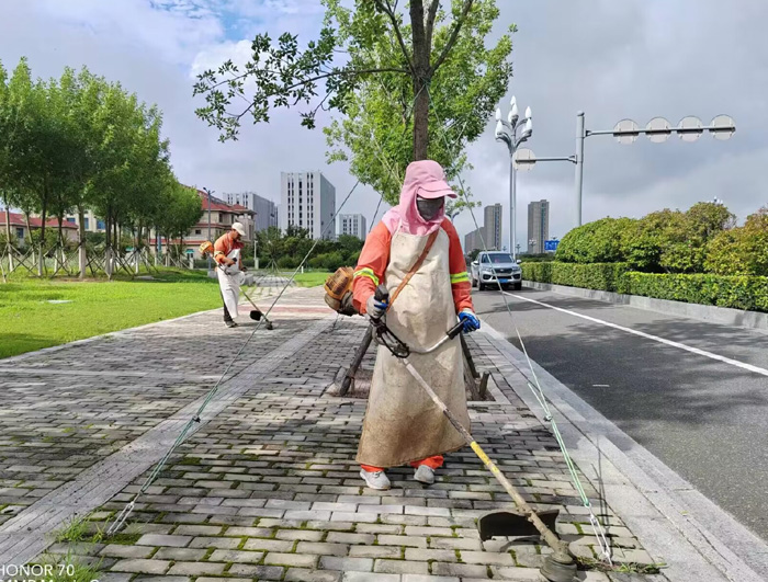 黑色柏油马路上,热浪滚滚,橙色工作服在强烈阳光照耀下显得格外引人注目。女子班组保洁人员在班长龚飞带领下,背着30余斤重的割草机,来回摆动手中机械,忘我工作达7个多小时,“收割”云河南路生活区周边杂草20多处;人工清扫装运施工车辆抛洒石子、泥土30余车,擦洗站台座椅40多个,清掏果皮箱余200余只。