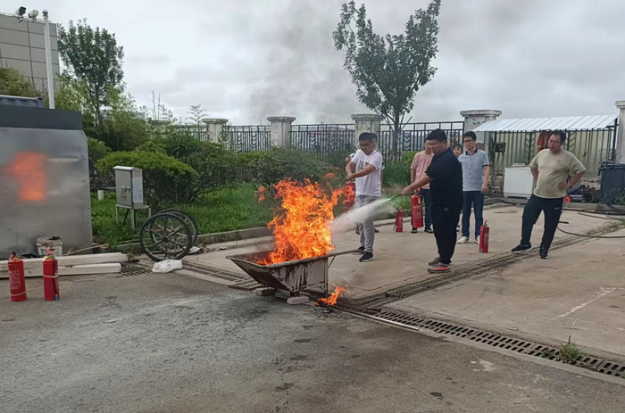 本次演练模拟公司办公楼三楼电缆井因电路故障引发火情组织职工开展应急疏散。 “起火啦!”15时许,办公楼三楼一电缆井内突然涌出滚滚浓烟。临近人员发现着火后,第一时间使用灭火器进行扑救。浓烟触发自动报警装置,消防控制室值班人员接到警报后,立即通知志愿消防队伍赶赴现场扑救,并拨打报警电话,向应急指挥部报告。公司应急指挥部立即启动应急预案,灭火抢救组、安全救护组、紧急疏散组等应急小组随即到位,有条不紊开展灭火、疏散等工作。消防救援队伍到达现场后,接过现场指挥权,开展灭火救援。安全抢救组搜索受伤人员,并对受伤人员简单急救后送往医院进行治疗,紧急疏散组立即组织办公大楼人员,用湿毛巾捂住口鼻从应急通道撤离。10分钟后,险情排除,应急救援结束。最后,组织部分人员开展灭火实操演练